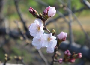 あさか大師の桜が開花しました(写真)。各地のニュースを聞いても、例年より少しずつ早くなっています。今年の「桜まつり」は4月4日(土)ですが、何とか持ちこたえてほしいと願ってやみません。
