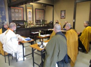 私は「山路天酬密教私塾」を開講し、後進の指導に当たっています。私がこれまでに学んだ真言密教や修験道、霊符や九星気学の普及に努めています。受法には遠く北海道や九州からも来山され、流派を問わず、求道の僧侶が来山しています(写真)。