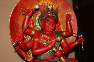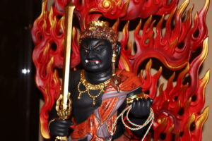 あさか大師では本尊としてお大師様の御影(写真上)と共に、愛染明王(写真中)と不動明王(写真下)を両脇にお祀りし、これを「一仏二明王」と呼んでいます。そして、ここにはその御影に込められた深いご誓願があります。