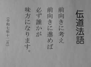 12月の伝道法語です(写真)。毎月、境内に掲示して、ご参詣の皆様に読んでいただいています。