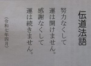 そして、その運が続くためには、お世話になったすべての人に対する感謝がなくてはなりません。努力は自分一人の努力ではないからです。自分の運を分かち合う、報恩の気持ちがなければ、運は続きません。仏教ではこれを「報恩謝徳」といいます。